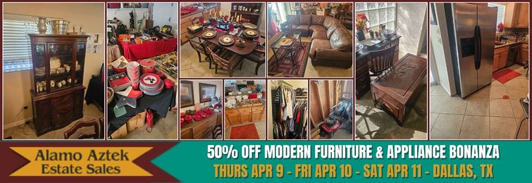 MID CENTURY MISSION STYLE MADNESS FURNITURE & APPLIANCE ESTATE SALE THURSDAY FRIDAY SATURDAY APRIL 23RD-APRIL 25TH 2026 RICHARDSON, TX YOU WANTED THE BEST,