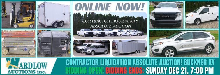 ONLINE ONLY AUCTION SURPLUS CONTRACTOR INVENTORY STARTS TO CLOSE: Sunday January 4th @ 2pm cst Location: 124 N McKinley St., Henderson, KY 42420 Pickup: Tuesday January 6th 12-4pm cst by appointment only through Shipping Saint program. WE