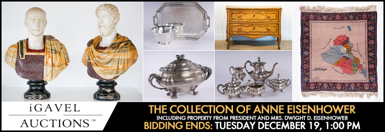 Capital Collections Auction, Friday, March 27 at 10am. Exhibition: Sat, Mar 21, 11am to 3pm, Mon-Wed, Mar 23-25, 10am to 4pm and Thurs, Mar 27, 10am to 2pm. 515 Dover Road, Rockville, Maryland 20850