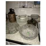 DINING ROOM TABLE, DISHES, NICE PLATES, CUPS