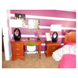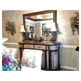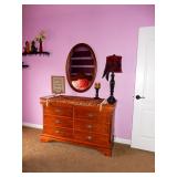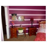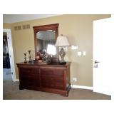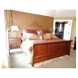 BUY IT NOW BED, SPECIALTY MATTRESS, HEAD AND FOOT BOARD PAIR OF NIGHT TABLES, DRESSER, MIRROR, AND