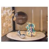 Ceramic Vase, Porcelain Figurine, Glass Pedestal Dish