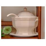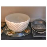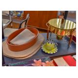Flat Screen TV, Pottery Bowl, Women's Hat, Brass Pedestal Dish