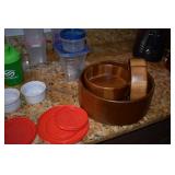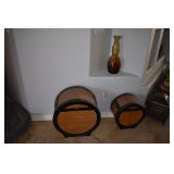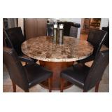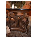 Teak with flower inlay and granite top
