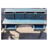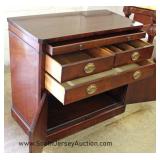 Mahogany Leather Top 2 Drawer Step Table by "Columbia Furniture" Located Inside - Auction Estimate $
