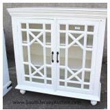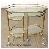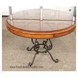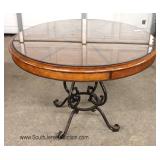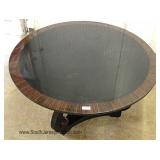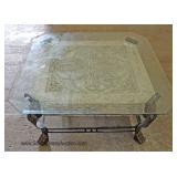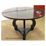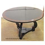 CONTEMPORARY Decorator Etched Glass Top Mahogany and Metal Base Console Table Located Inside - Aucti