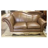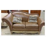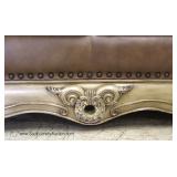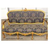Mahogany Carved Frame French Style Upholstered Settee Located Inside
