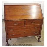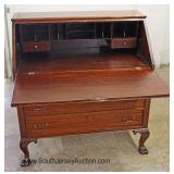 Mahogany Serpentine Front Ball and Claw Slant Front Secretary with Bookcase Top Located Inside - Auc