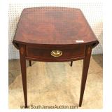 -- BEAUTIFUL – 60" Burl Mahogany Banded Round Dining Room Table with Perimeter 10" Leaves to Expand