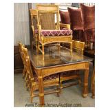 NICE 9pc Antique Style SOLID Oak Oval Dining Room Table w/4 Leaves & 8 Carved Oak High Back Chairs