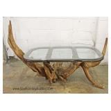 SOLID Mahogany Stretcher Base Display Table Located Inside - Auction Estimate $100-$200