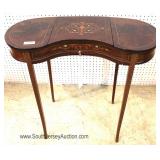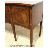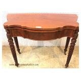 SOLID Burl Mahogany Inlaid and Banded Taper Leg Console Table Located Inside - Auction Estimate $200