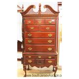 - LIKE NEW - SOLID Cherry Queen Anne Full Bonnet High Boy by "Harden Furniture" Located Inside - Auc
