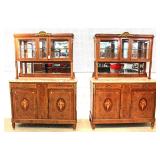 PAIR of SOLID Mahogany 12 Pane Corner Cabinets by "Henkel Harris Furniture" Located Inside - Auction