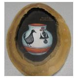 Southwest Gourd Art with Feathers - Signed