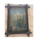 EARLY FRAMED TAPESTRY FIREPLACE SCREEN