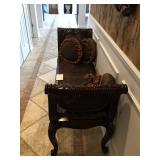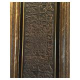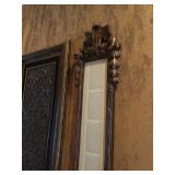 Antique Storage Cabinet with Inlaid Wood Front Panel and Carved Relief