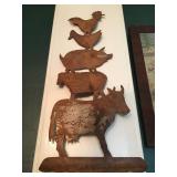Stars and Stripes Hand Painted Folk Art Checker Board, Copper Wall Hanging Bow