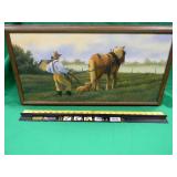 13 1/4 X 25 1/2 Painting of Farmer plowing (Prim