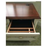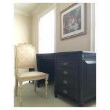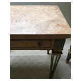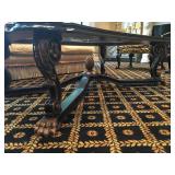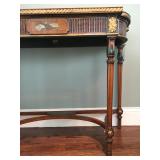 Burled Two Drawer Desk with Brass Legs and Griffin Detail