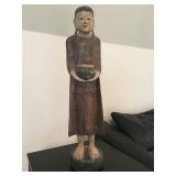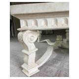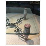 Artifacts International Cocktail Table, Carved Wood Base with Glass Inset