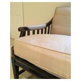 Rattan Back and Seat Mahogany Armchairs with Down Cushions