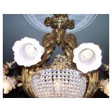 One of 2 French bronze/crystal chndeliers