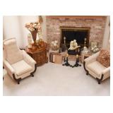 Ornate Pink Upholstered Armchairs, 3-Drawer Chest with Stone Top