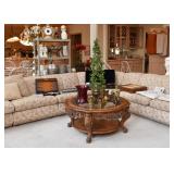 Beautiful Carved Cocktail / Coffee Table with Glass Top (Approx. 42" Dia x 20" H)