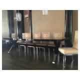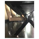 1) Lorin Marsh Custom X Base Dining Table in High Gloss Black Finish with Polished Nickel Sabot
