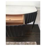 6) PAIR, Harry Schnaper Fluted Demilune Cabinets with White Leather Tops