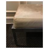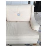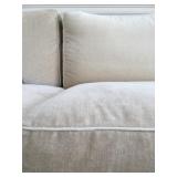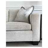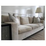 13) Henry Chan Custom Built Jean-Michel Frank Square Arm Sofa in 100% Linen Pile Velvet with Cow Hid