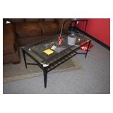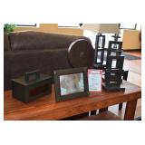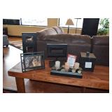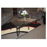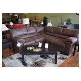 Leather Sectional Sofa, Coffee Table, Rug, & Decor