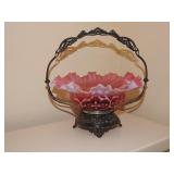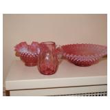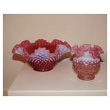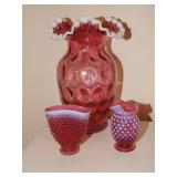 Cranberry opalescent hobnail and coin dot glass