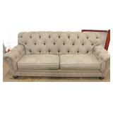 NEW Contemporary Grey Upholstered Button Tufted Sofa Auction Estimate $300-$600 – Located Inside