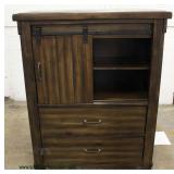 NEW Country Barn Door Front Media Cabinet with Tags in the Grey Wash Finish Auction Estimate $200-$4