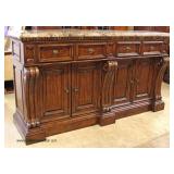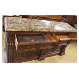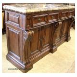 Contemporary Burl Mahogany Marble Top Buffet Auction Estimate $200-$400 – Located Inside