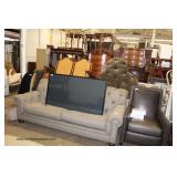 NEW Contemporary Grey Upholstered Button Tufted Decorator Sofa Auction Estimate $200-$400 – Located