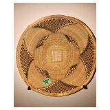 Vinyl Wicker Dinette w/ 36" diameter black glass top and 4 chairs - $345