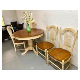 Round Wood & Cream Pedestal Dining Table w/4 Chairs