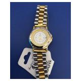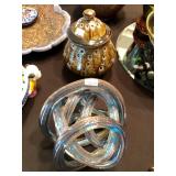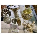 6-Sided Gold Curio Tower w/glass shelves - $195 - (Appx. 24" Dia/W 78"H)