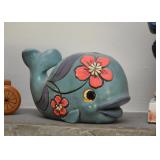 - Set of 6 - Vintage Wood Dining Chairs with Upholstered Seats and Flower Motif (2 not shown here)