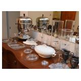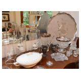 Asian Serving Tray, Crystal Pedestal Bowl, 50th Anniversary Glasses & Covered Dish