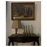 Heram Campbell Merrill, Flip Top Card Table, Marble Lamp, Cast Iron Floor Standing Candle Holders