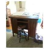 Wood architectual desk with stool