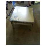 floor cloth attached to top of coffee table