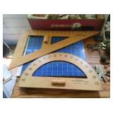 Early drafting table manual and cast iron rule