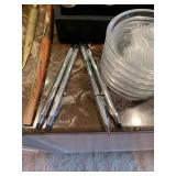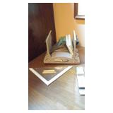 Lucite Trays (2) plus stand; one bracket on one tray bracket is disconnected, fixable; Dimensions fo