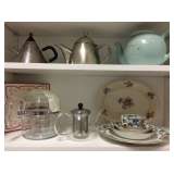 Vintage cake stand, Pyrex perculator