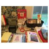Vintage Kenmore sewing machine in cabinet, vintage lamps